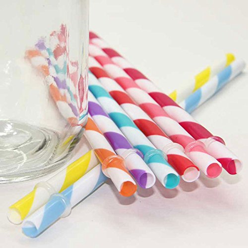 -. Title : Dakoufish 12 Piece 9 Inch Reusable Plastic Thick Drinking Straws BPA Free Mason Jar Straws Big Stripe 10 Colors