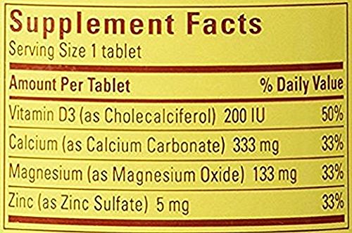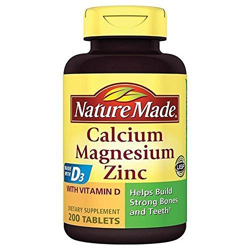 -. Binding : Health and Beauty -. Feature : AdE.q.u.a.t.e Calcium and Vitamin D in a healthful diet is important for teen, young adult and post menopausal women / Helps build strong bones and teeth / May reduce the risk of osteoporosis -. IsAdultProduct : 0 -. Label : Nature Made -. Manufacturer : Nature Made -. PackageQuantity : 2 -. ProductGroup : Health and Beauty -. ProductTypeName : HEALTH_PERSONAL_CARE -. Publisher : Nature Made -. Studio : Nature Made -. Title : Nature Made Calcium Magnesium Zinc with Vitamin D3, 200 Tablets (Pack of 2)