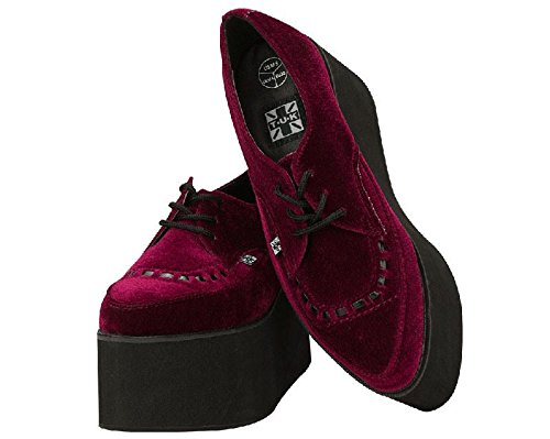 Binding : Apparel Product Description Last few left! These will not be restocked! Dare to be different with these sky high 3" tall Vegan friendly burgundy velvet stacked creepers. Some of our tallest creepers to date these new pointed creepers have a heel height of 3" with a 2.5" platform height. Available in unisex sizes Men's 3-9. 0
