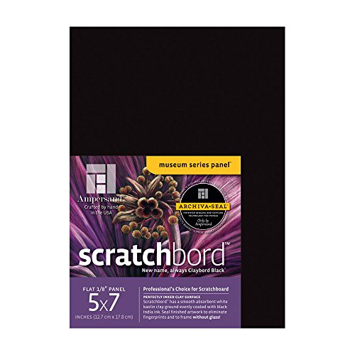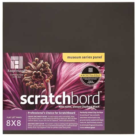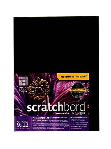 Formerly called "Claybord Black", this is quality board for a fine artist. Create white on black drawings or add color to bring new life to your scratchboard art. An even layer of India Ink is applied to original Claybord with no wrinkling.Feature