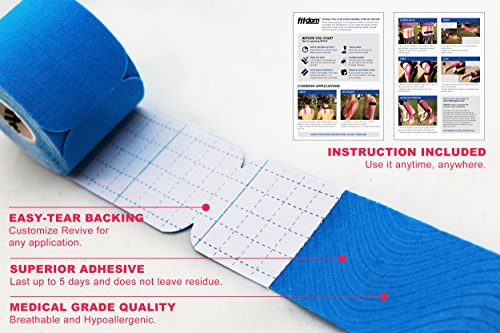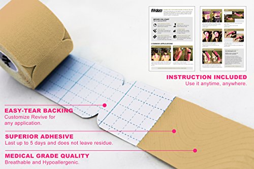 Kinesiology tape does not works unless it stays on your body. ★ Uses the latest adhesive technology and guarantees to stay on for up to 7 days. ★ Added Spandex improves flexibility while maintaining elasticity. ★ Made with hypoallergenic medical grade materials that is water resistant yet gentle to the skin. ★ 20 pieces strips pre-cut to 2 inch x 10 inch each for fast and easy application.