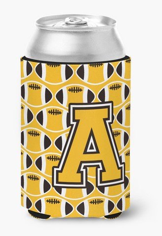 Caroline's Treasures CJ1080-ACC Letter A Football Black, Old Gold and White Can or Bottle Hugger, Multicolor