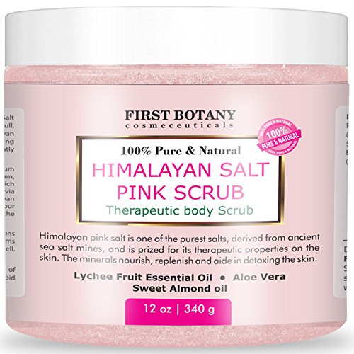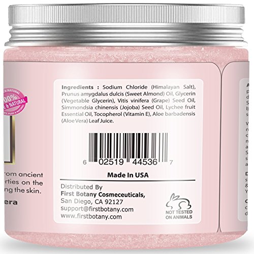 - ALL NATURAL HIMALAYAN SALT FULL BODY SCRUB: First Botany Himalayan Sweet Almond & Lychee Pink Crystal Salt Body Wash Scrub comes with a high quality Himalayan salt for its maximum nutrient profile including calcium, magnesium, potassium, copper & iron; no harmful chemicals.