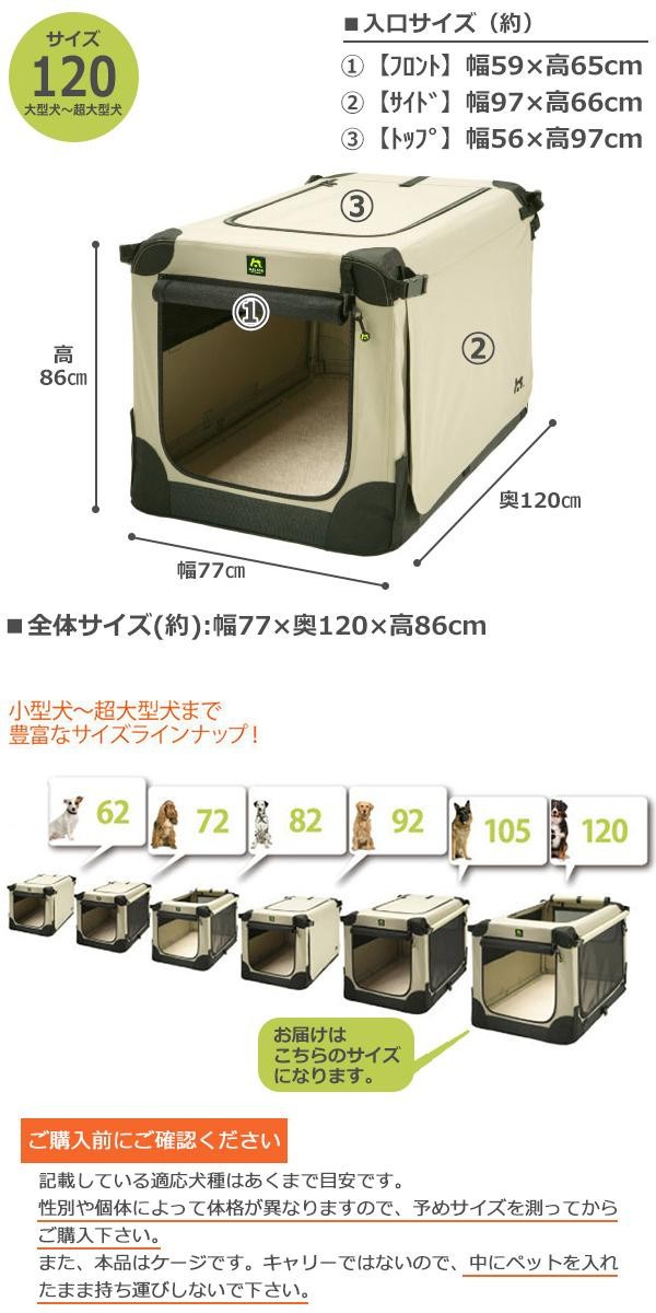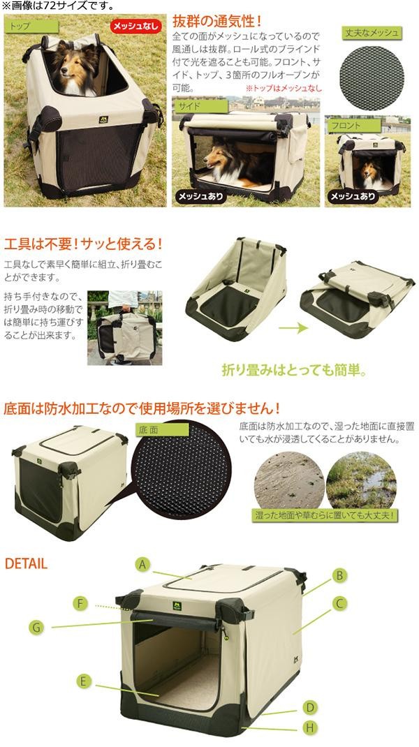 | アウトドアでの使用に最適な形状。通常のケンネルよりもソフトな分、軽量になっています。4方向メッシュ仕様で抜群の通気性を実現。底面は防水加工をしていますので、場所を選ばずにご使用いただけます。サッと組み立てられ、簡単に折り畳めるので、持ち運びや収納にも便利です。 |