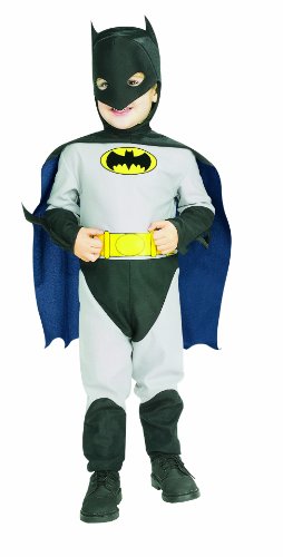 - Feature : Costume comes with jumpsuit, arm guards forming batwing cape, and black mask with pointed ears / Classic jumpsuit features adjustable velcro backing for comfort and ease / Available in infant 6 to 12 months and toddler 12 to 24 months / Officially licensed batman costume / From Rubie's Costume co, the world's costume leader since 1950