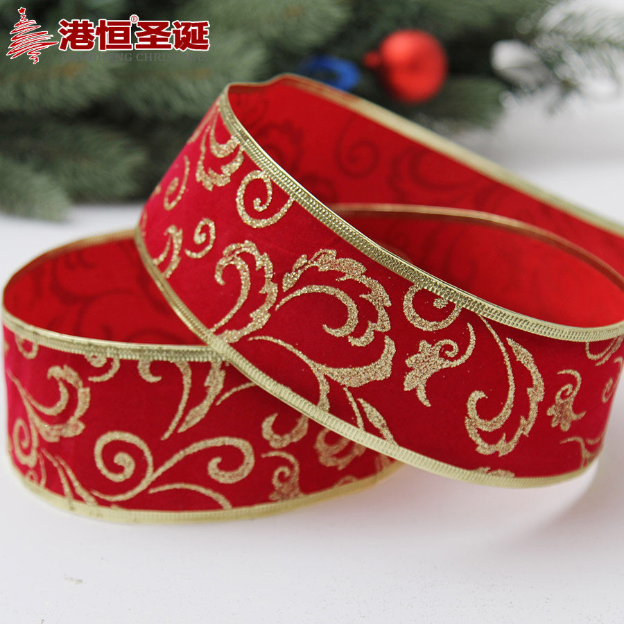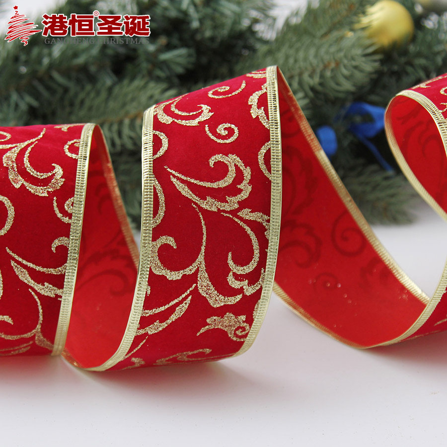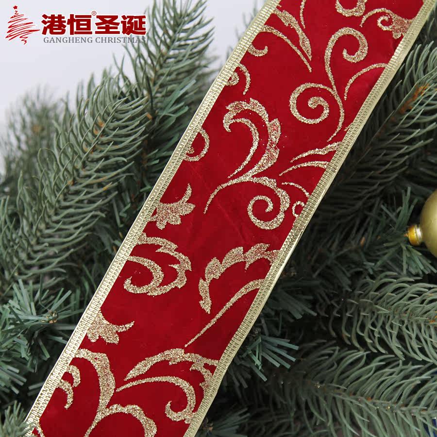 港恒圣诞200cm深红绒布印单金粉压金边圣诞织带 圣诞树装饰织带