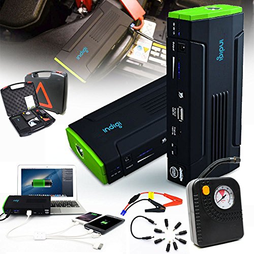 -. Title : Indigi Heavy Duty 12800mAh USB 12V Emergency Jump Starter Power Bank Flat Tire Air Compressor w/ Durable Hard Case Kit