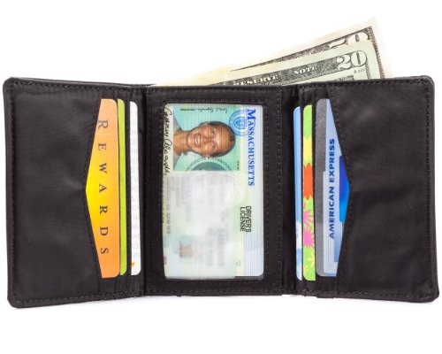 -. Binding : Sports -. Brand : Big Skinny -. Department : mens -. Feature : Classic double-fold-over design with full-sized billfold area / ID pocket with clear window; 4 credit card pockets; 2 hidden storage pockets / Pockets lined with rubbery coating to prevent cards from sliding out / Constructed of thin, light and durable nylon microfiber; machine washable / Measures 3 x 4-1/8 Inch -. Label : Big Skinny -. Manufacturer : Big Skinny -. Model : TFLDNY25-P -. ProductGroup : Sports -. ProductTypeName : OUTDOOR_RECREATION_PRODUCT -. Publisher : Big Skinny -. Studio : Big Skinny -. Title : Big Skinny Men's Tri-Fold Slim Wallet