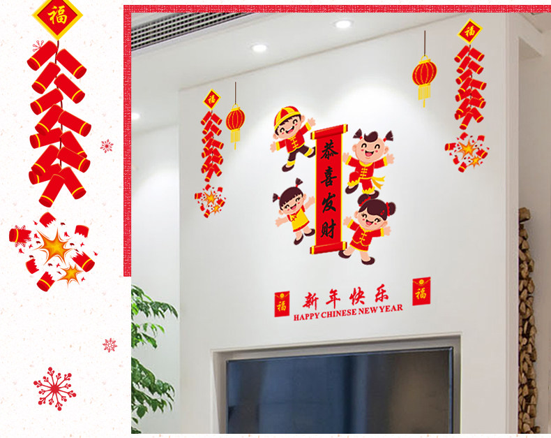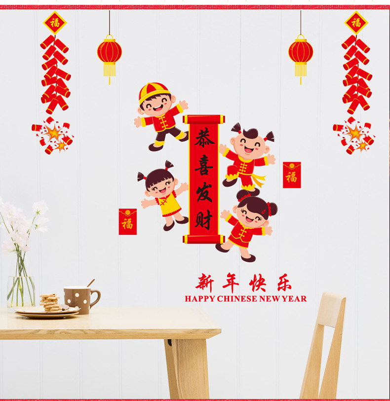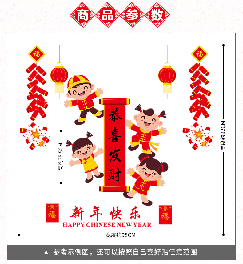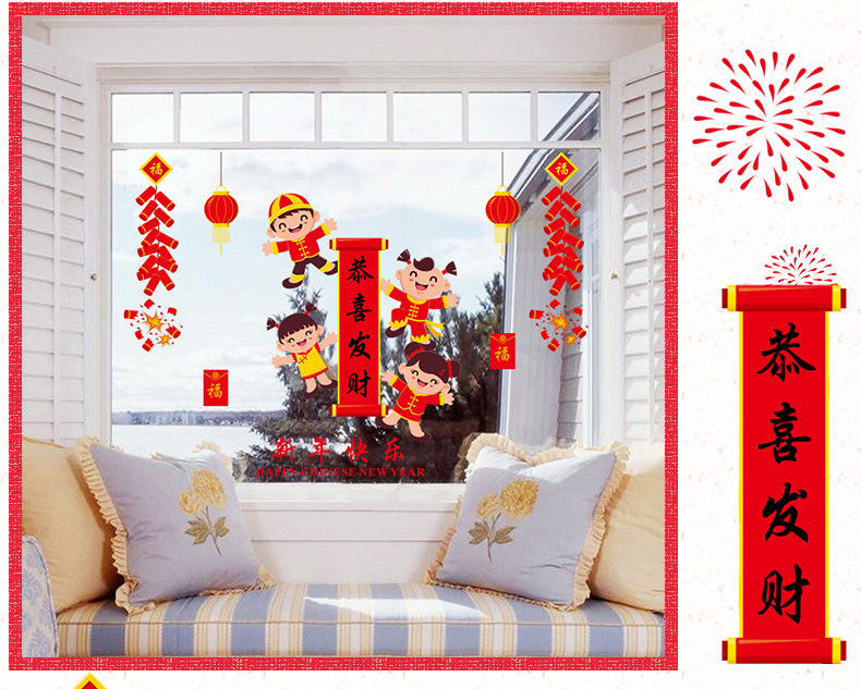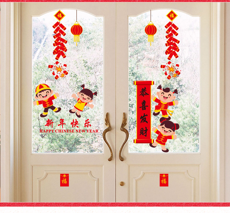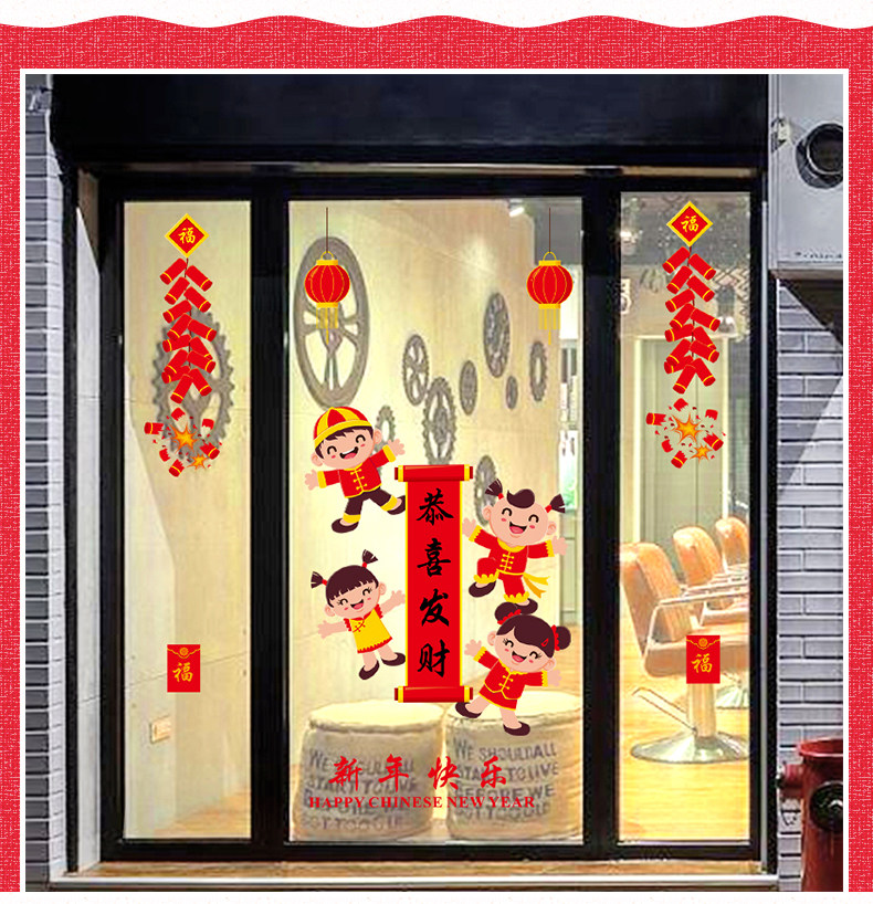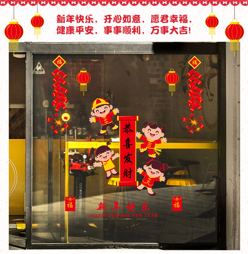 新年快乐贴纸春节过年福娃墙贴商场橱窗玻璃窗贴店铺门贴装饰
