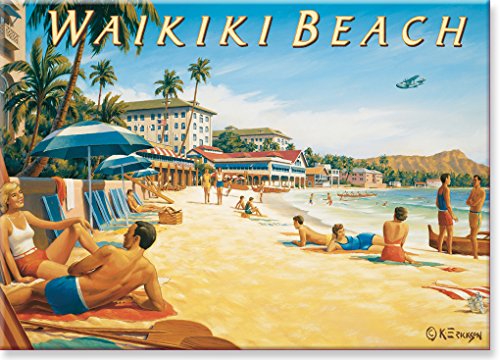 Hawaiian Art Collectible Refrigerator Magnet - Waikiki Beach II by Kerne Erickson