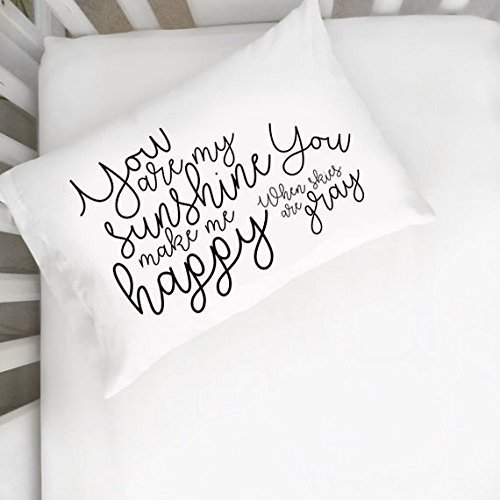 YOU ARE MY HOPE AND MY SUNSHINE! - One (1) luxury White toddler size 14" x 20" Pillowcases with "You are my sunshine You make me happy when skies are gray" in BLACK Script text. Fits Toddler Size Pillow inserts. Wake up everyday with this sweet and inspiring messages in this pillowcase