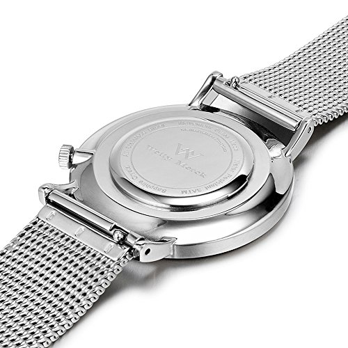 The yearning classic Los Angeles combines traditional aesthetics with contemporary single line, bring in a new definition to modern stylish. It has a classic silver round case that measures 36 millimeters in width, round dial with a diameter of 34 millimeter for a modern update, and the silver mesh strap measures 18 millimeters in width. If you crave refined and chic while still representing your fashion style, then the classy and exquisite classic Los Angeles hits the spot. Gorgeous and elegant. This Welly Merck watch is outfitted with a Ronda 762 movement, sapphire crystal, durable all stainless steel 316l, mesh strap and can withstand water damage at depths of up to 3 atmospheres. The most exciting features or best selling points of the watch are minimalist two hands that provide unostentatious and understated lifestyle, 4pm position and super thin that make it comfortable to wear, innovative interchangeable strap that can change the look of the watch in just a few seconds without a tool, sapphire crystal that ensures the hardness and durability of the watch.Feature