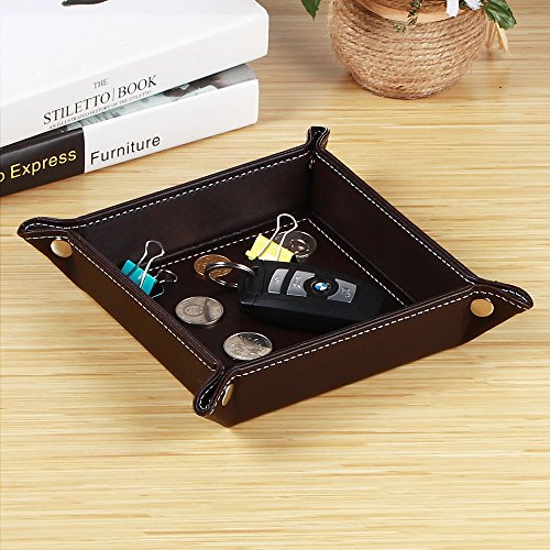 -. Title : PU Leather Watch Box Change Coin Key Tray for Storage, Valet Tray Jewelry Organize Bedside Dresser Tray