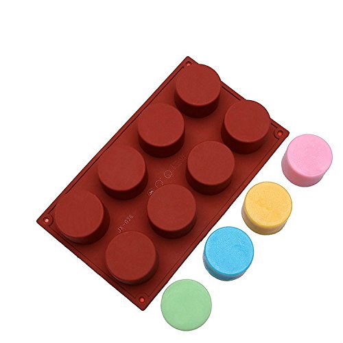 B&S FEEL 8-Cavity Round Cylinder silicone mold for Handmade Soap, Cupcake, Bread, Loaf, Muffin, Brownie, Cornbread, Cheesecake, Pudding, and More (Random Color)