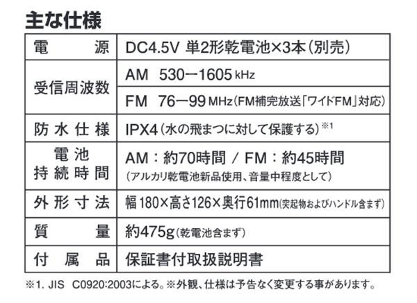 キッチンやバスルームで水しぶきを気にせず聴ける、POPでおしゃれなシャワーラジオです!前面配置の大型つまみで濡れた手でもラクラク操作。φ100mmスピーカー搭載。ワイドFM(FM補完放送)にも対応しています。 |