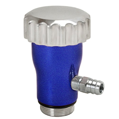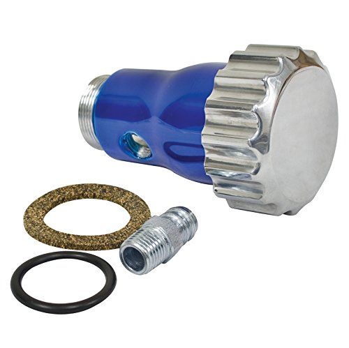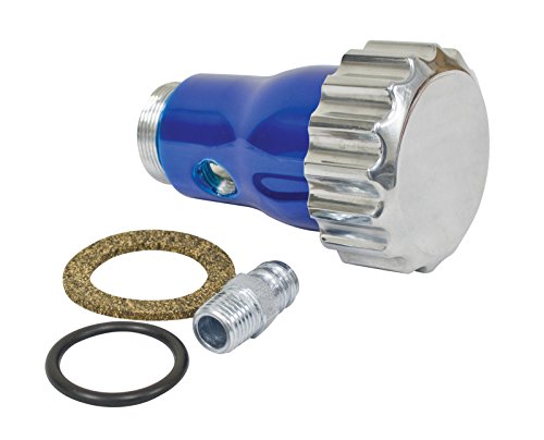 Product Description Our smooth-flow oil filler now available in powder-coated red blue or black finish topped with our polished billet grooved cap. Supplied with A¼? npt-1/2? barbed hose fitting for easy hook-up to a breather line. Powder coated blue 0