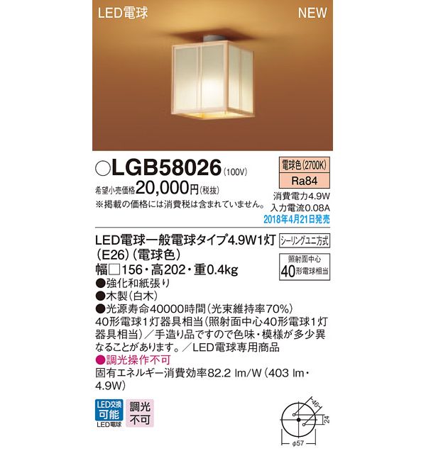 ●形数:白熱電球40形1灯器具相当