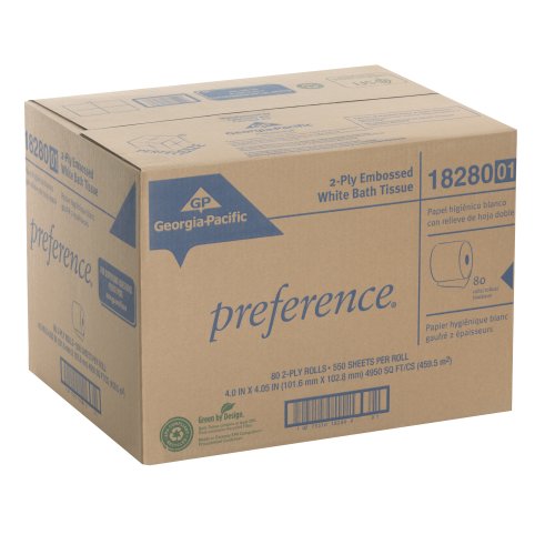 Georgia-Pacific Preference 18280/01 Ply Embossed Bathroom Tissue, (WxL) 4.00" x 4.05" (Case Of 80 Rolls, 550 Sheets per Roll), White