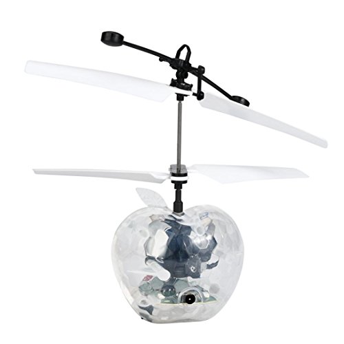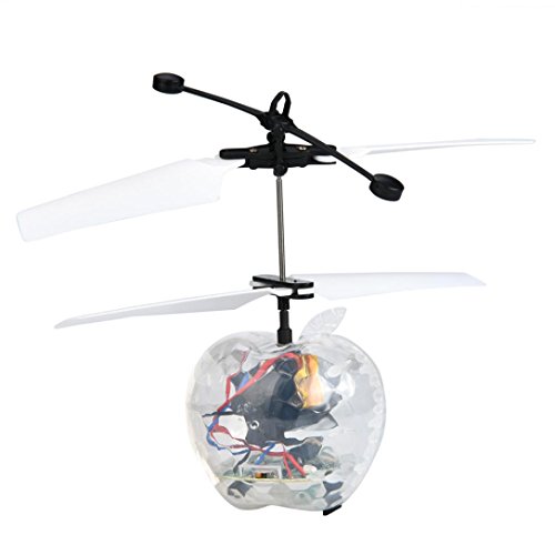 100% brand new and high quality Body Material: ABS Plastic Dimensions: 11 x 5cm (H x W) Package Dimension: 17.5 x 17 x 5.5cm (L x W x H) Flight Time: Approx. 6-8 minutes Charging Time: About 20 minutes Battery: Rechargeable 3.7V 80mAh Lithium Battery Suitable for: Ages 8 USB Charging Auto Start induction turn on the switch and wait 3 seconds,it will fly automatically, Package Content: 1X Flying Apple toy 1X USB charging cable 0