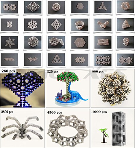 -. Feature : Creative and hot puzzle toy for enhancing assembly ability. Improve children intelligence and imagination. Magnet can be used Creative and Decorative, Crafts, DIY Do It Yourself, Infinite combinations is easy, excitation creativity Stress Relief / Endless combinations. It is not easy but up to your patience and creativeness. The size is 1.2*1.2*1.2 inch,made up of 216pcs small ball that diameter 0.2 inch.( 216 pcs 5x5x5mm small blocks) / Material: Magnet, it is non-toxic and harmless. Magnetic ball is Not suitable for under 8 years children. For using under adult supervision. NOT TO EAT,PLEASE BE ACCOMPANIED BY PARENTS OR ADLUT TO PLAY IT / Portable for travelling and having fun with friends. Who will be able to create the most difficult structure? / If you want to build a large model like picture, it is recommended to buy 3-6 sets(216 balls in one set). More than 1000 balls.