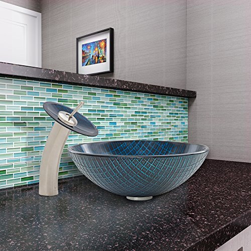 VIGO Blue Matrix Glass Vessel Bathroom Sink