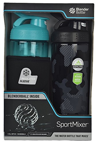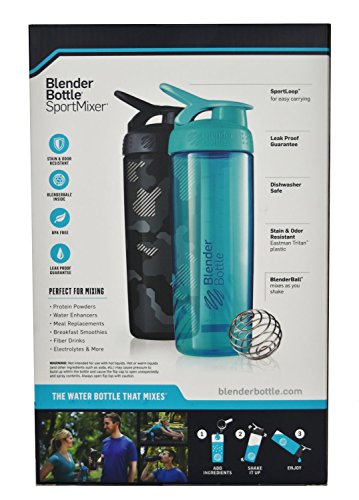 Blender Bottle SportMixer System with 28-Ounce Bottle and Twist n' Lock Storage 2 Pk, Blue/Black