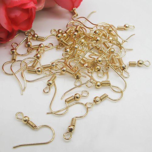 TOAOB K-Gold Tone 18MM French Hook Ball and Coil Ear Wires Earring Hooks for jewelry making 100pcs
