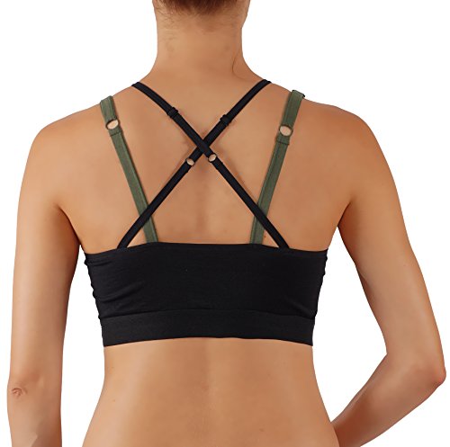 -. Title : ROUGHRIVER Women's Yoga Top Extra Support Sports Bra with Mesh Removable Padding and Criss Cross Straps Back