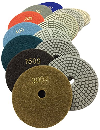 - 7 Pieces of 4" Wet Polishing Pads (Include Grit 50, 100, 200, 400, 800, 1500, 3000)