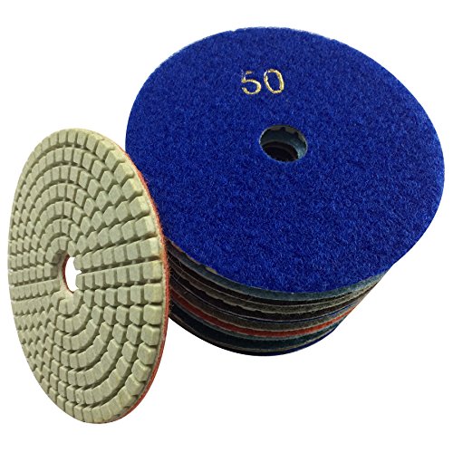 Konfor Diamond Polishing Pads 4" Wet Use for Sanding Marble Granite Stone Concrete Travertine Polish Pack of 7 Grit 50 - 3000