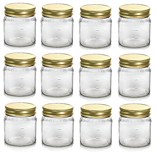 [Product Information]- Nakpunar brand 8 oz Glass Mason Jar with measurement. 12 jars and 12 lids