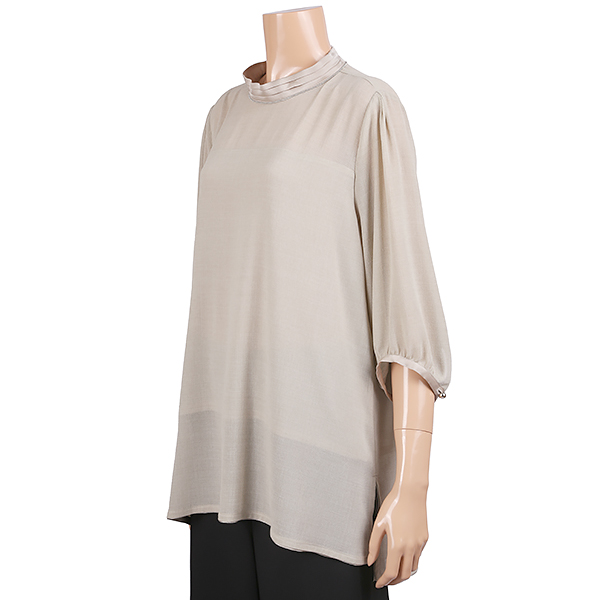 어깨의셔링의 귓엽고 사랑스러움과 7부기장의소매에 벌륜소매의 여성스러움에 엉덩이를 충분히 덮는 하프기장에