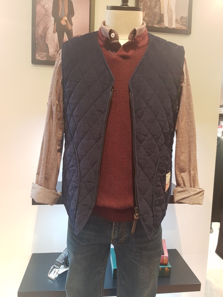 봄 스타일과 달리 면 코듀로이 소재를 사용하여 더욱 캐주얼하게