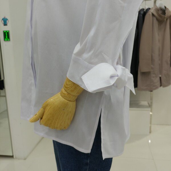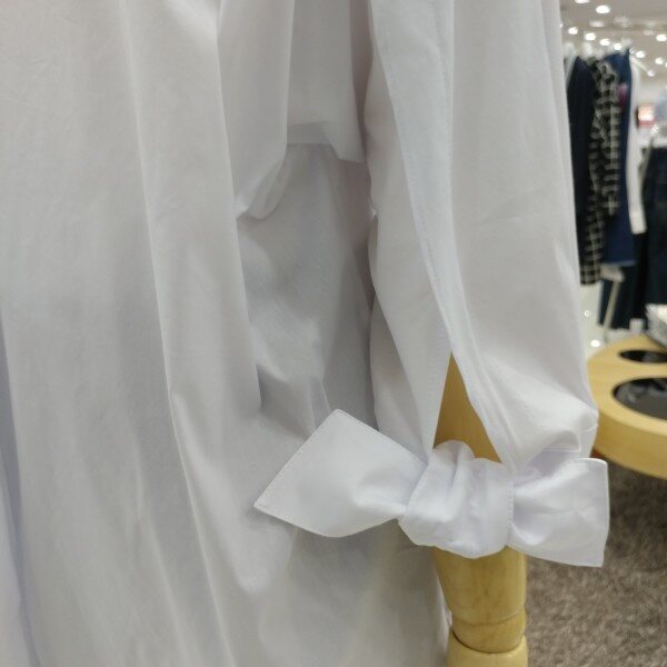 기본 카라넥라인에 세련된 페이스라인을 선사하는 제품으로 소매 리본포인트를 주어 사랑스러움은 물론