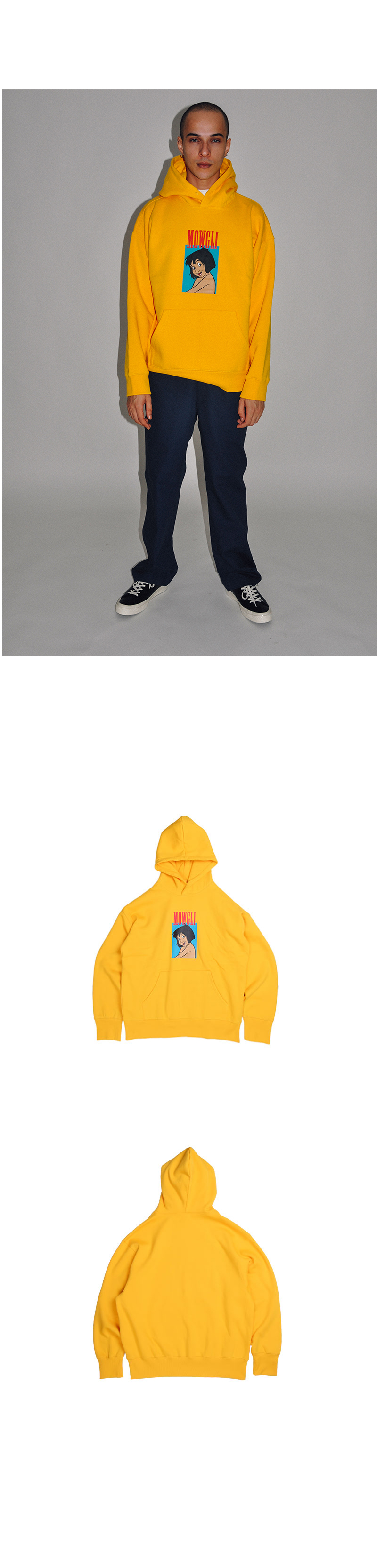 MOWGLI HOODIE YELLOW 실측 SIZE(cm) 총장 : S :70 /M : 72/ L : 74 어깨 : S :54 /M : 56/ L : 58 가슴 : S :60 /M : 62/ L : 64 소매 : S :58 /M : 60/ L : 62