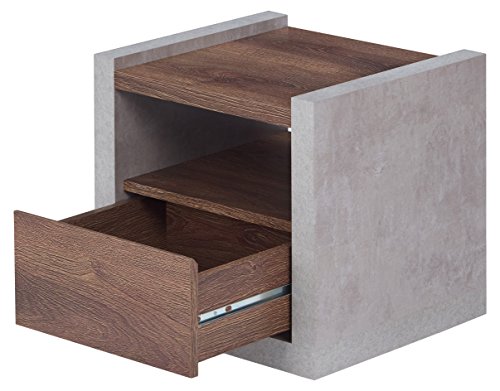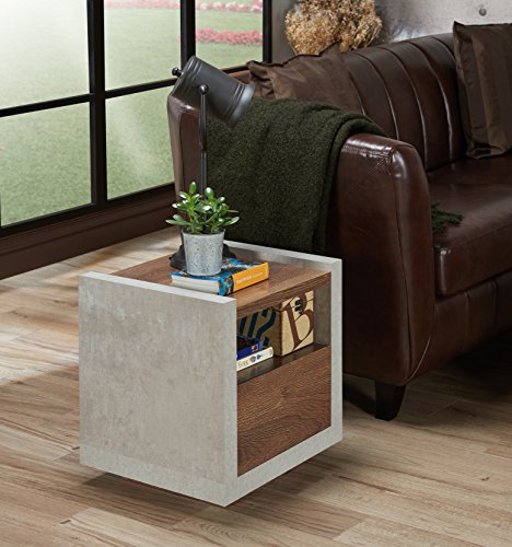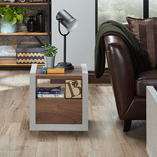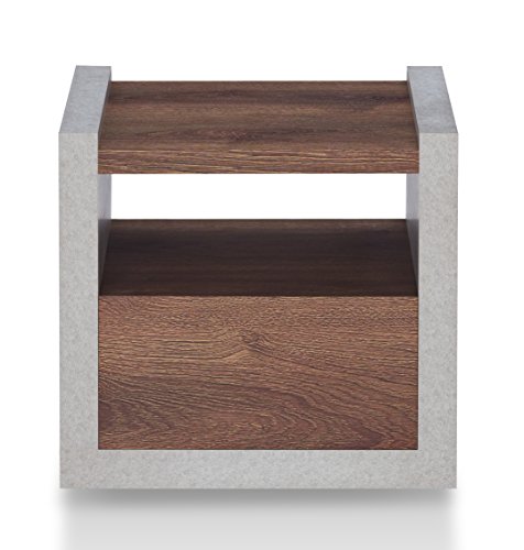 HOMES: Inside + Out FGI-1780C21-ET Fresna Shelf Storage Drawer End Table, Cement/Distressed Walnut