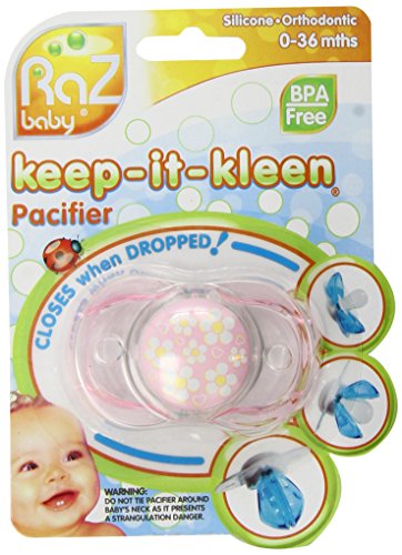 -. Title : RazBaby Keep-it-kleen SCHNULLER Rosa Blumen: Schliesst, wenn er fällt