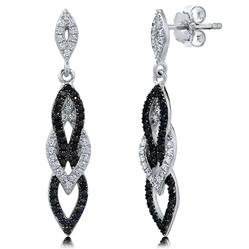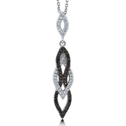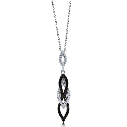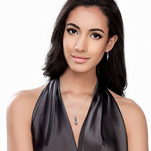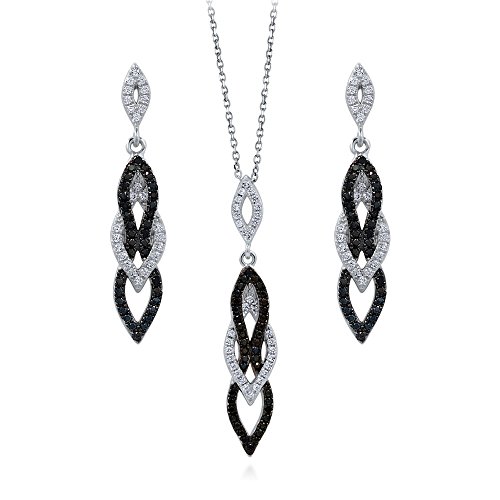 This 2-piece black and white earrings and pendant necklace set's chic sophistication will compliment your day to night look in dazzling spirals of elegance. Made of rhodium plated fine 925 sterling silver. Set with 1.04 carat round cut clear and round cut black cubic zirconia in micro pave setting. Earrings measure 1.3 inch in length, 0.26 inch in width. Posts with butterfly backs. Pendant measures 1.5 inch in length, 0.3 inch in width. Chain measures 18 inch in length, 1mm in width. Spring ring clasp. Imported.