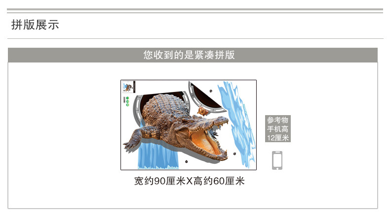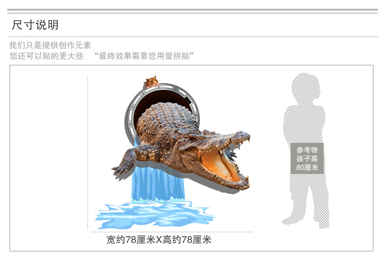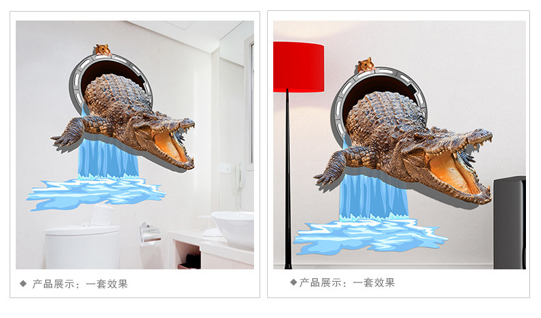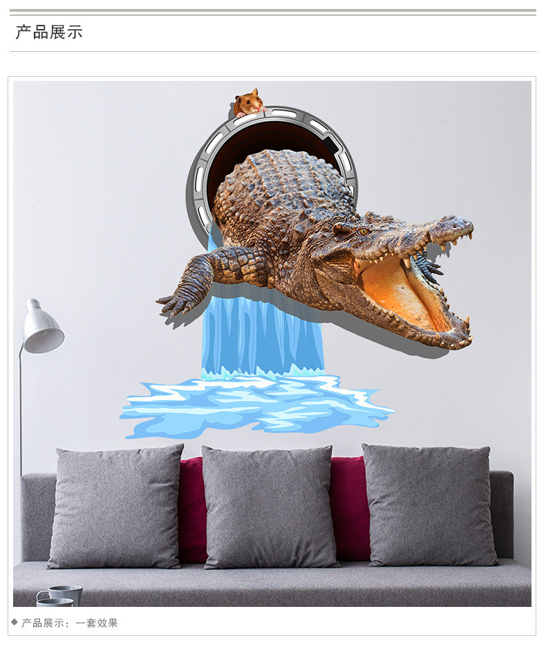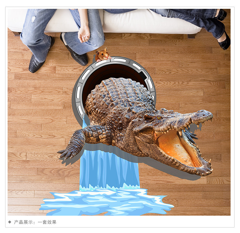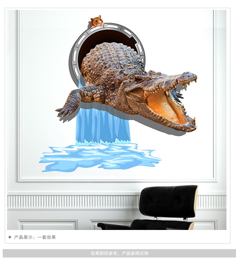 3D立体墙贴纸鳄鱼贴画地板天花贴纸客厅卧室装饰创意自粘墙纸动物