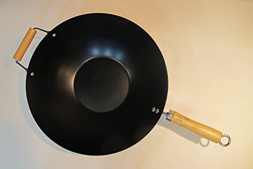 -. Feature : Prepare your food to perfection with this high quality iron 13" wok with an easy to clean Coated surface / Classic, durable design features a heavy gauge metal cooking surface and two wooden, metal reinforced handles / Perfect for stir frying, braising, steaming and deep frying, ideal for gas and electric stoves, low to medium heat