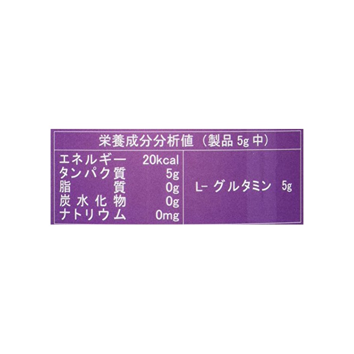 영양 성분 : (제품5g당)에너지 20kcal 단백질 5g 지질 0g 탄수화물 0g 나트륨 0mg L-글루타민 5g