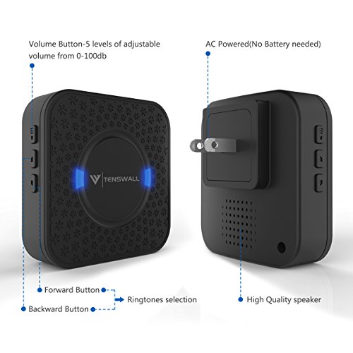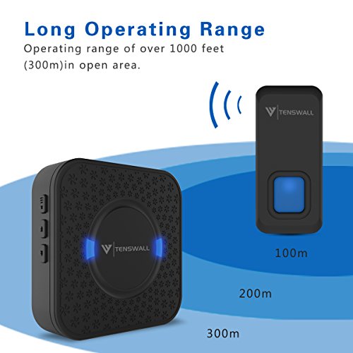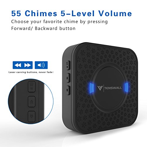 PREMIUM WIRELESS DOORBELL: Tenswall wireless doorbell ranges up to 1000feet (300 M), ensuring that you will never miss a visitor again! And the most important.The volume is adjustable and you can choose among 5 levels from 0db-110db while there are 55 different chime choices! Forget annoying doorbell sounds, now you can have your favorite chime in the volume that you prefer, include a silent mode with only LED flashes!