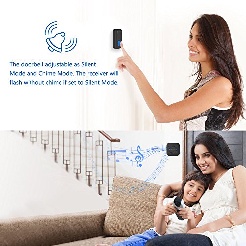SMART LED FLASHING LIGHT: Every time someone pushes the transmitter button, both the transmitter and the wireless receiver will flash a blue light in a circle area. This way, your visitors can know if the bell rang, while you can be notified by the blue light in your indoor receiver even when you are wearing your headphones or even earplugs! And you can also set a silent mode, only Led Indicators.