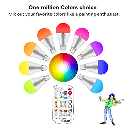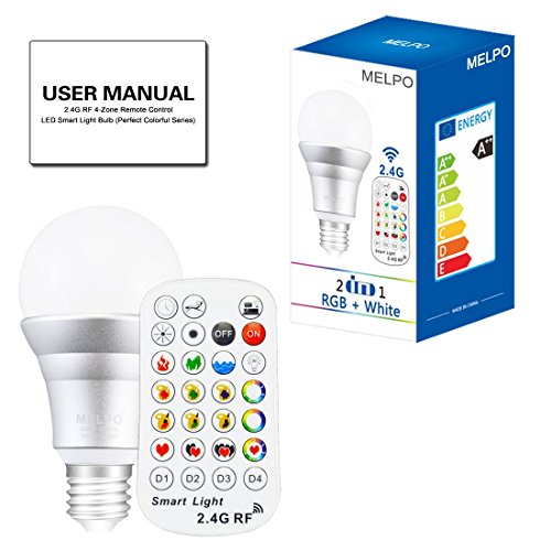 MELPO E26 Dimmable Color Changing Led Light Bulbs with Remote Control (2.4G RF, 4-Zone), 60 Watt Equivalent, RGB & Daylight White