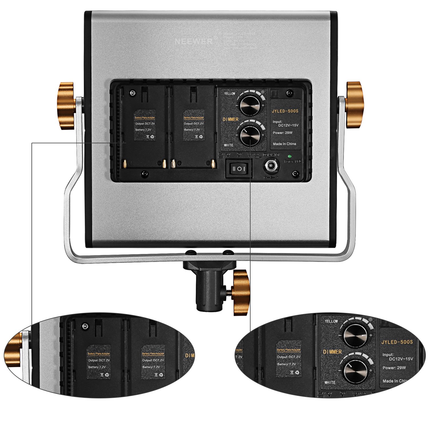 - With color temperature knob you can adjust the color temperature from 3200K to 5600K.