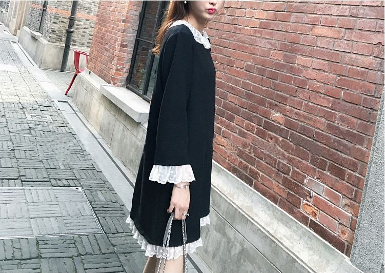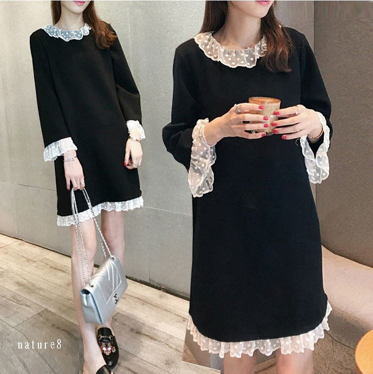 ゆったりシルエットできやすいタイプ!袖と襟部分のレースが可愛いチュニックワンピース! ナチュラルラインで着心地抜群!!