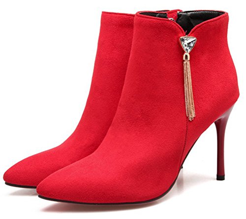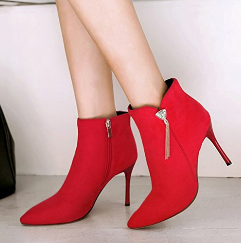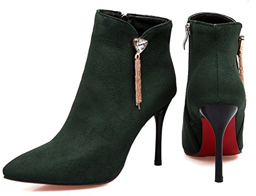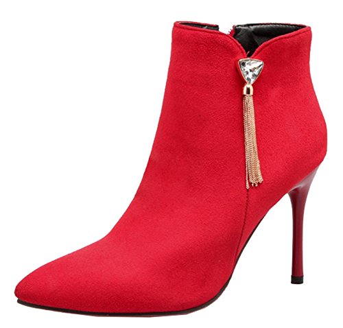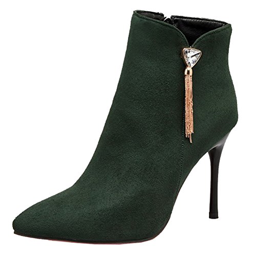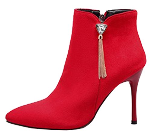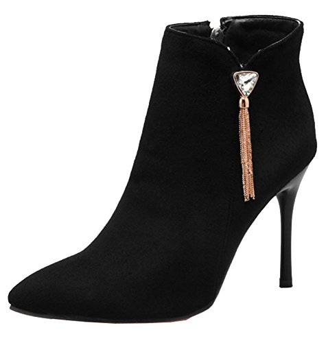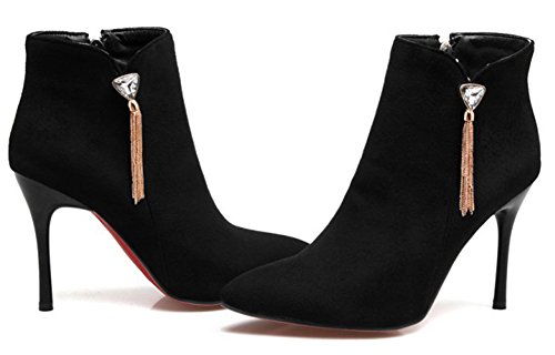 Binding : Apparel Product Description The cold weather is coming. And do you need to change the style of your shoes? If you have this idea, why not choose the ideal shoes in our shop? This pair of boots is for women, girls, young ladies and office workers. You will look sexy and chic when wearing them. The heels measure 3.7 inches. You will look slimmer and slender in their high heels. So you will not feel too tired when walking with them. The pair of shoes features ankle warp and inside zipper. The design of pointed toe and rhinestones will make you look cool. The sole is made of good rubber. You will feel comfortable in their soft bottom. They are of high quality and durable. Come on and take them away! 0