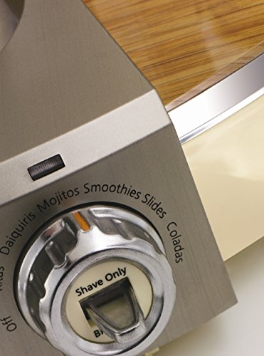 The Margaritaville Tahiti Frozen Concoction Maker is your passport to take your next party to the islands! With three independent blending stations, the Tahiti offers the ultimate in frozen drink making for your biggest bash, blending a variety of restaurant-quality frozen drinks at the press of a button. The Tahiti features three separate blending jars and six automated drink settings, pre-programmed to shave ice and blend the perfect Margaritas, Daiquiris, Coladas, Mudslides, Mojitos and Smoothies. The Tahiti”s rotating ice chute will entertain your guests and become the hot topic of conversation long after the party ends. And, the Tahiti is incredibly easy to use. Simply fill the top reservoir with ice, pour your favorite ingredients into the blending jars and, with the touch of a button, the automatic Shave-N-Blend controls create up to 72 ounces of pitcher-perfect frozen drink deliciousness in one easy step. The shaved ice is the key to restaurant-quality drink consistency - no more ice chunks or watered down drinks. The Tahiti manual controls also allow you to thicken or thin your drink to your personal preference with the “shave only” and “blend only” settings at each blending station. A large capacity ice reservoir holds enough ice to make up to 144 ounces of frozen drinks and heavy-duty die cast components keep the party going. Melting ice is channeled into a rear reservoir to avoid watered-down drinks. All the blending jar components are dishwasher safe, and the rest of the unit quickly wipes clean. The Tahiti will be the center of attention at your next party, featuring premium brushed nickel housing, polished stainless steel accents and bamboo wood detailing. The Margaritaville Tahiti Frozen Concoction Maker is your escape to paradise!Feature