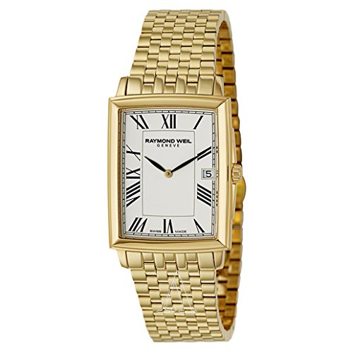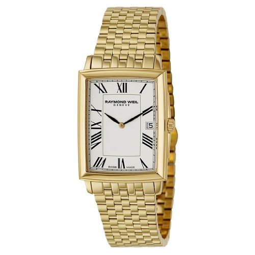 -. Binding : Watch -. Brand : Raymond Weil -. Color : Gold Tone/White -. Department : mens -. EAN : 0762115018652 -. Feature : Raymond Weil marries tradition and modernity in this timepiece, whose design features include elegant Roman numerals and a sharp rectangular case. / Swiss Quartz movement with analog display / Protective anti-reflective sapphire crystal dial window / Features date window at three o'clock, gold-plated stainless steel, deployment clasp / Water resistant to 165 feet (50 M): suitable for swimming and showering -. Label : Raymond Weil -. Manufacturer : Raymond Weil -. Model : 5456-P-00300 -. MPN : 5456-P-00300 -. PackageQuantity : 1 -. PartNumber : 5456-P-00300 -. ProductGroup : Watch -. ProductTypeName : WATCH -. Publisher : Raymond Weil -. ReleaseDate : 2013-12-17 -. Size : Standard -. Studio : Raymond Weil -. Title : Raymond Weil Men's 5456-P-00300 "Tradition" Gold-Plated Stainless Steel Bracelet Watch -. UPC : 845960049801