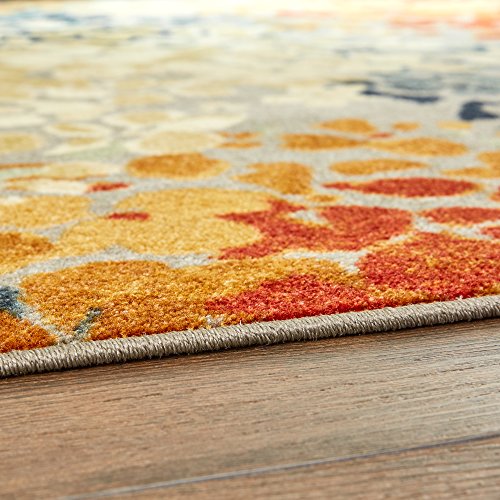 Add excitement to your space with the brightly colored abstract floral design. Printed on the same machines that manufacture one of the world’s leading brands of printed carpet, this rug is extremely durable and vibrant. This technology allows the use of multiple colors to create a rug that is wonderfully designed and applicable to any room in your home. Printed on the same machines that manufacture one of the world’s leading brands of printed carpet, this rug is extremely durable and vibrant. This technology allows the use of multiple colors to create a rug that is wonderfully designed and applicable to any room in your home. With this gorgeous contemporary style and abstract print, this rug's pile height is 13/32 in high. Remember to keep the pile and fabrics in tip top shape. Area rugs should be spot cleaned with a solution of mild detergent and water or cleaned professionally. Regular vacuuming helps rugs remain attractive and serviceable. Only the best quality materials will do. This rug is printed with a cut pile on Wear Dated 100% nylon, backed with latex. Made in USA.Feature